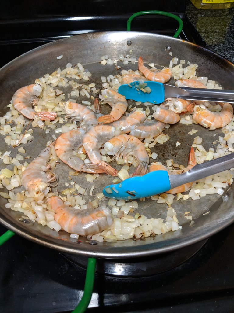 Add the shrimp and cook until it is lightly pink. The shrimp will continue cooking when you add the rice. Remove the shrimp and set aside.