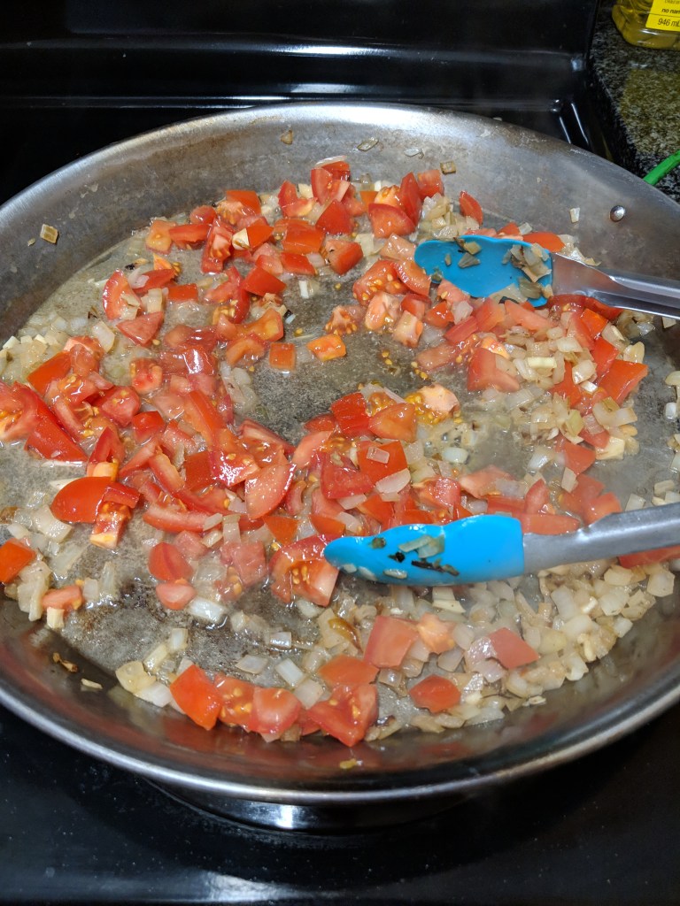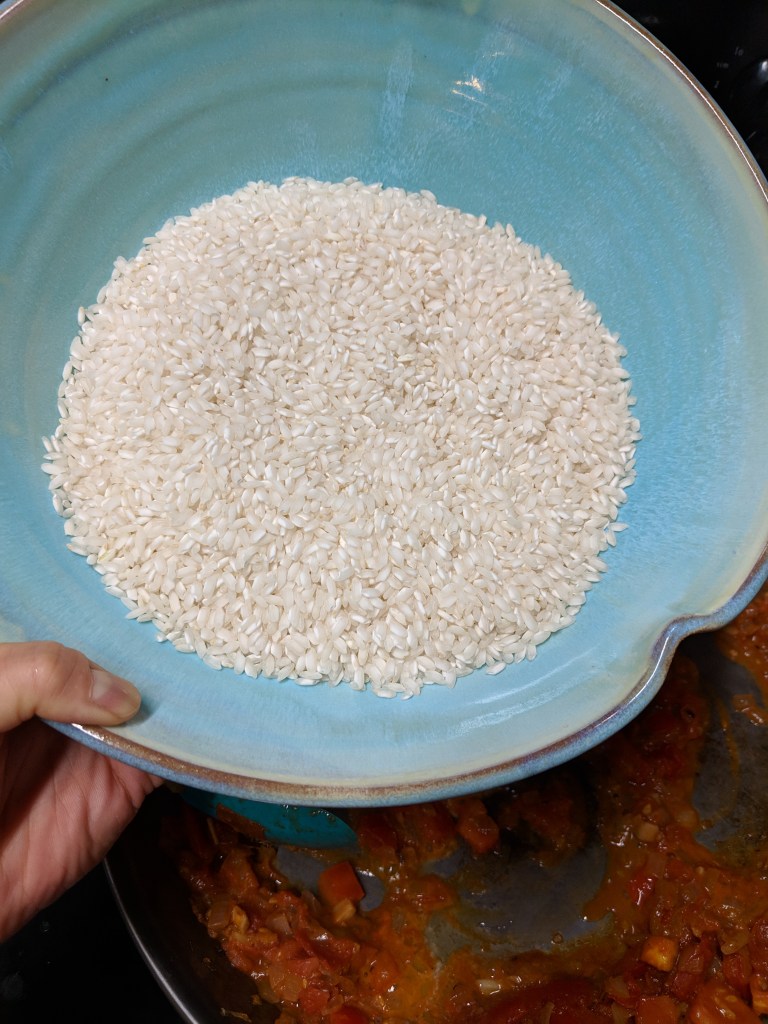 Cook the tomatoes for another 2-3 minutes and then add the rice.