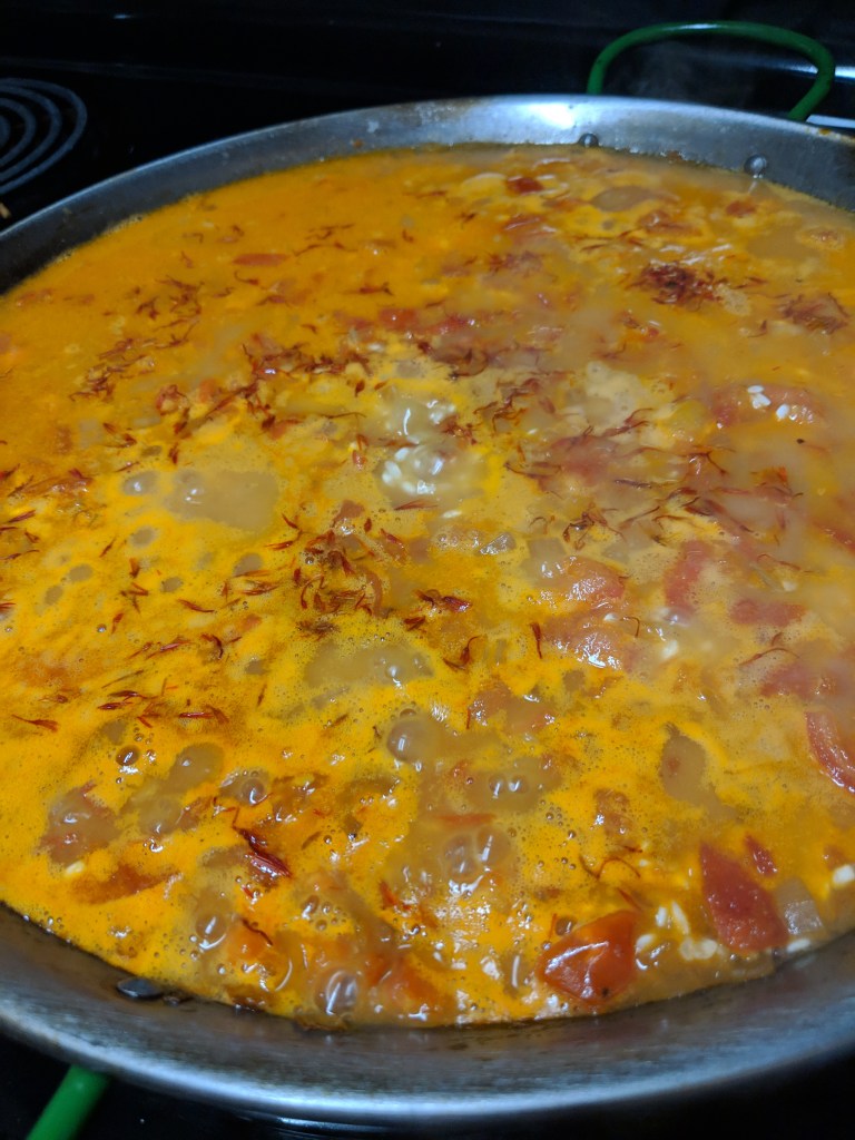 This was one of my first attempts to make paella. I wouldn’t say it was perfect but it does require a couple tries to get it right. Here is my recipe and tips for a good crust.