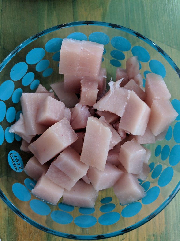 For this ceviche, I used tuna as my choice of fish. Cut the fish into cubes and set aside.