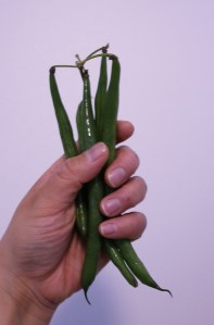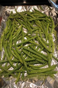 Wash and clean the beans. You can leave them long or break them into smaller pieces. Mix in garlic powder and pepper and a little oil.