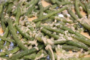 One thing I do recommend is getting some nice and young green beans. I think mine were a little old so they were a little chewy. The recipe I followed said you can use frozen, but I haven’t tried frozen yet. The ingredients you need are garlic powder, pepper, Parmesan and green beans.