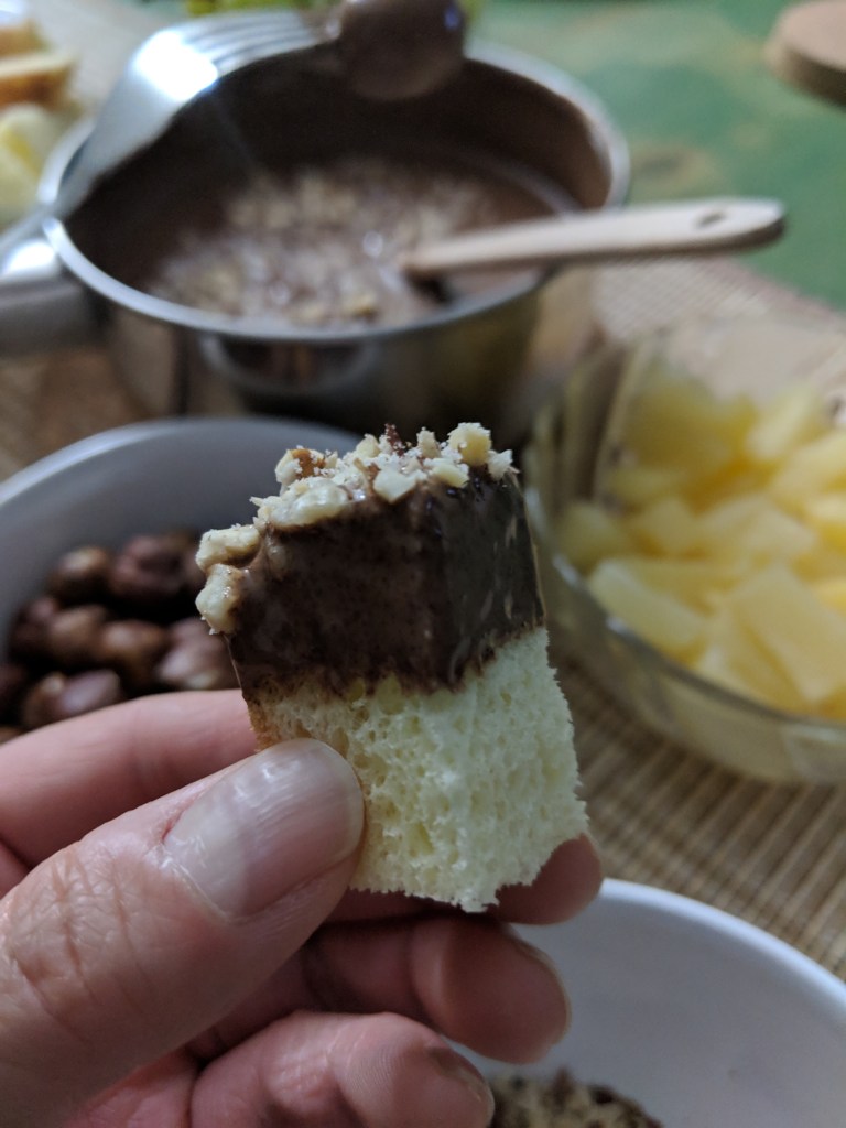 To make this fondue extra special, add some toasted, crushed hazelnuts. (Secretly, this is like a melted ferreror rocher.)