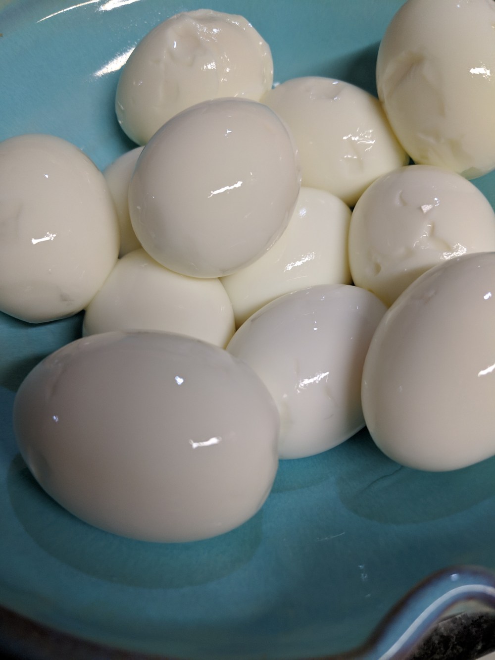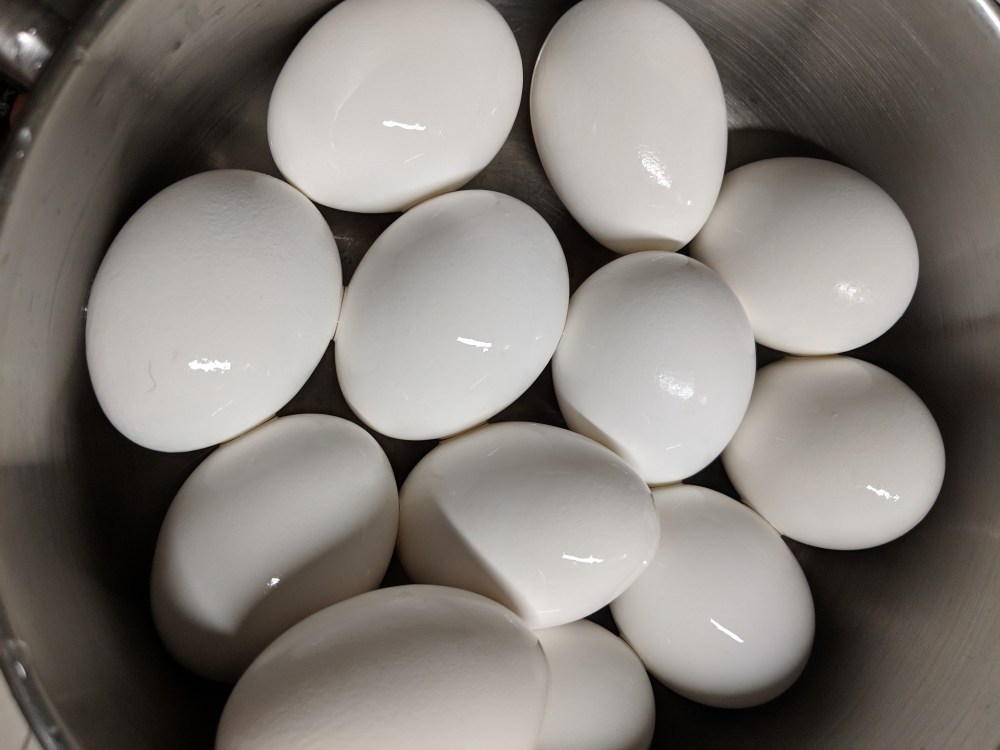 I decided to give the traditional recipe a bit of a twist by adding some avocado. Begin by boiling a dozen eggs. You want to get them to a point that they are just hard boiled but not overdone. I find that if you boil them for about 9-10 minutes, you get the perfect boiled egg.