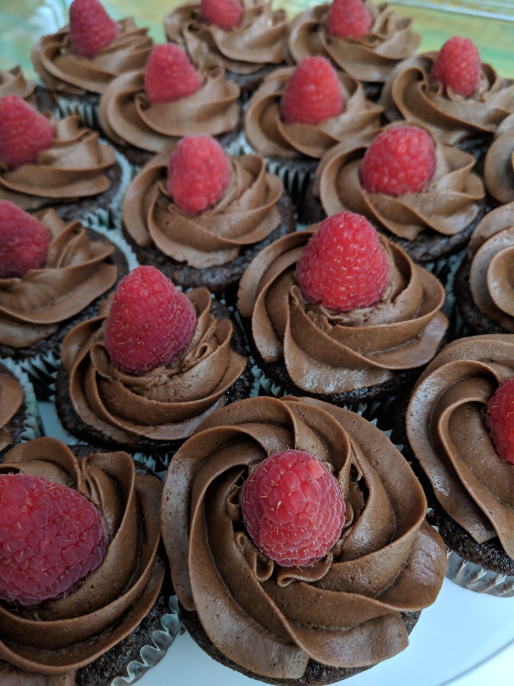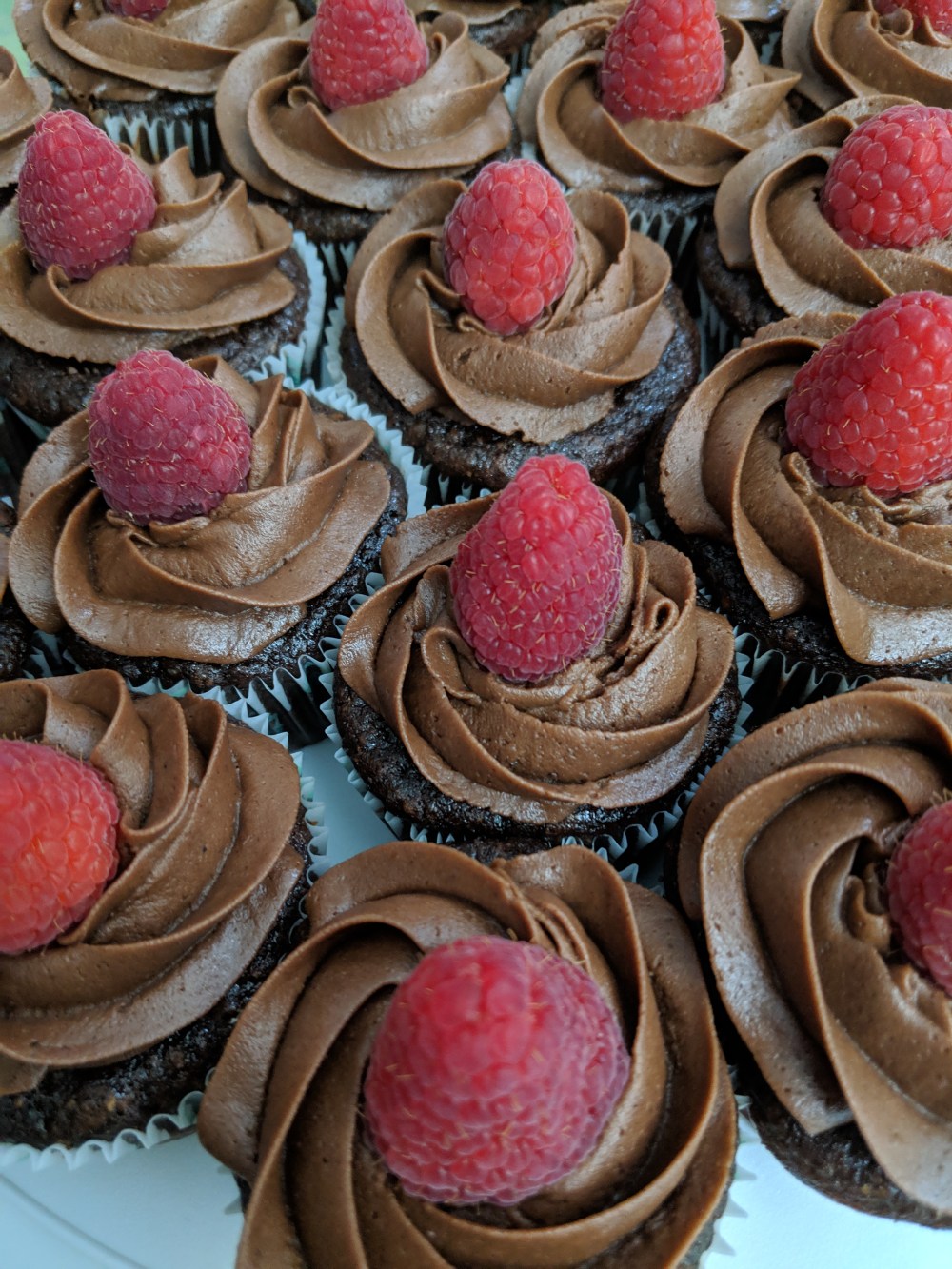 Pipe the frosting on the cupcakes and decorate with a raspberry. Enjoy!!