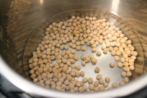 Soak the dried chickpeas in water for an our or overnight. Drain. Place the chickpeas in the instant pot with 4 cups of water and press manual pressure on high for 40 minutes.