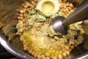 When the chickpeas are done, use quick release and drain the chickpeas. To this add all of the ingredients. Use an immersion blender or put in a food processor. Start with 1/2 cup of chickpeas and add more if needed.