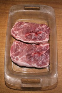 I made this recipe with two pork shoulder steaks. They were about 3/4 of an inch thick.