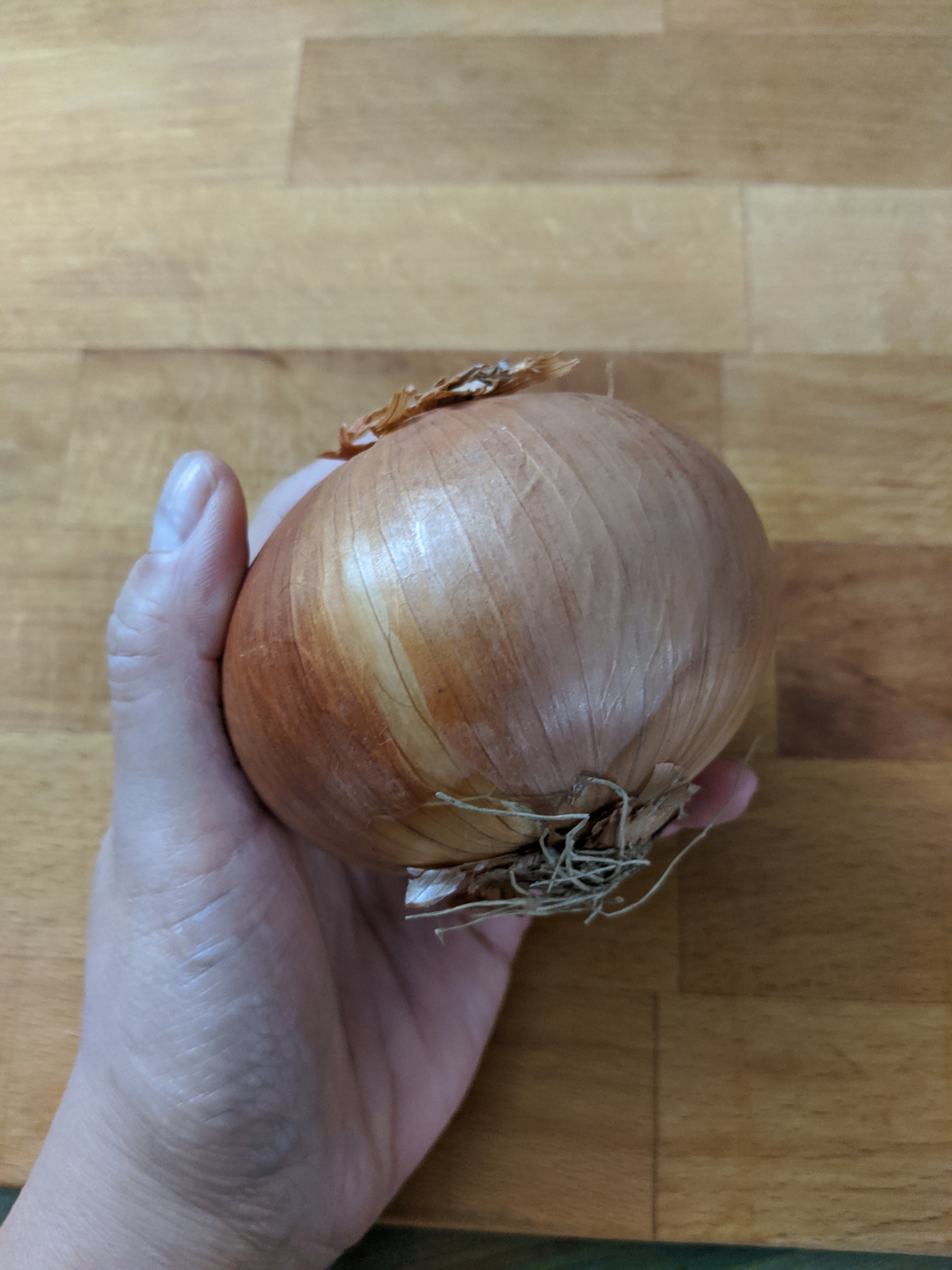 Dice a medium yellow onion and saute it in a pan. Add the 1/4 cup butter. Cook until the onions become translucent. I find cooking the onion before hand gives a better caramel flavour.