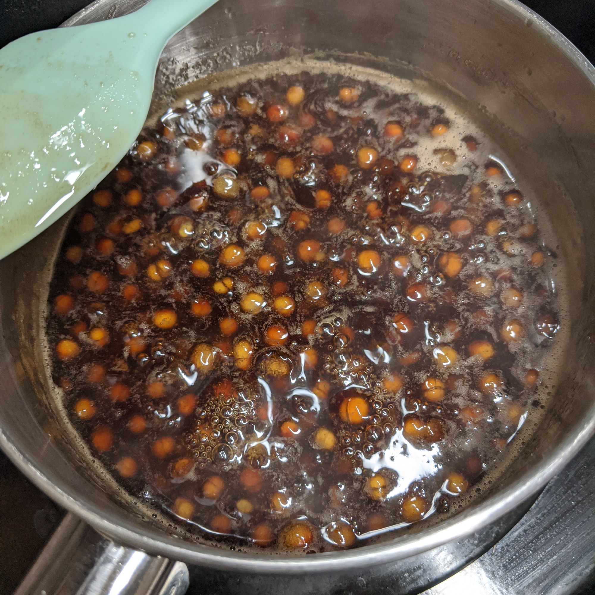 To make the sugar water mixture. Place 1 cup of water into a pot. Add 1 cup of raw sugar or turbinado sugar. Turbinado sugar has a nice cane sugar taste and has natural molasses. Boil the sugar and water until the sugar is completely dissolved. Add the boiled pearls and let it sit.