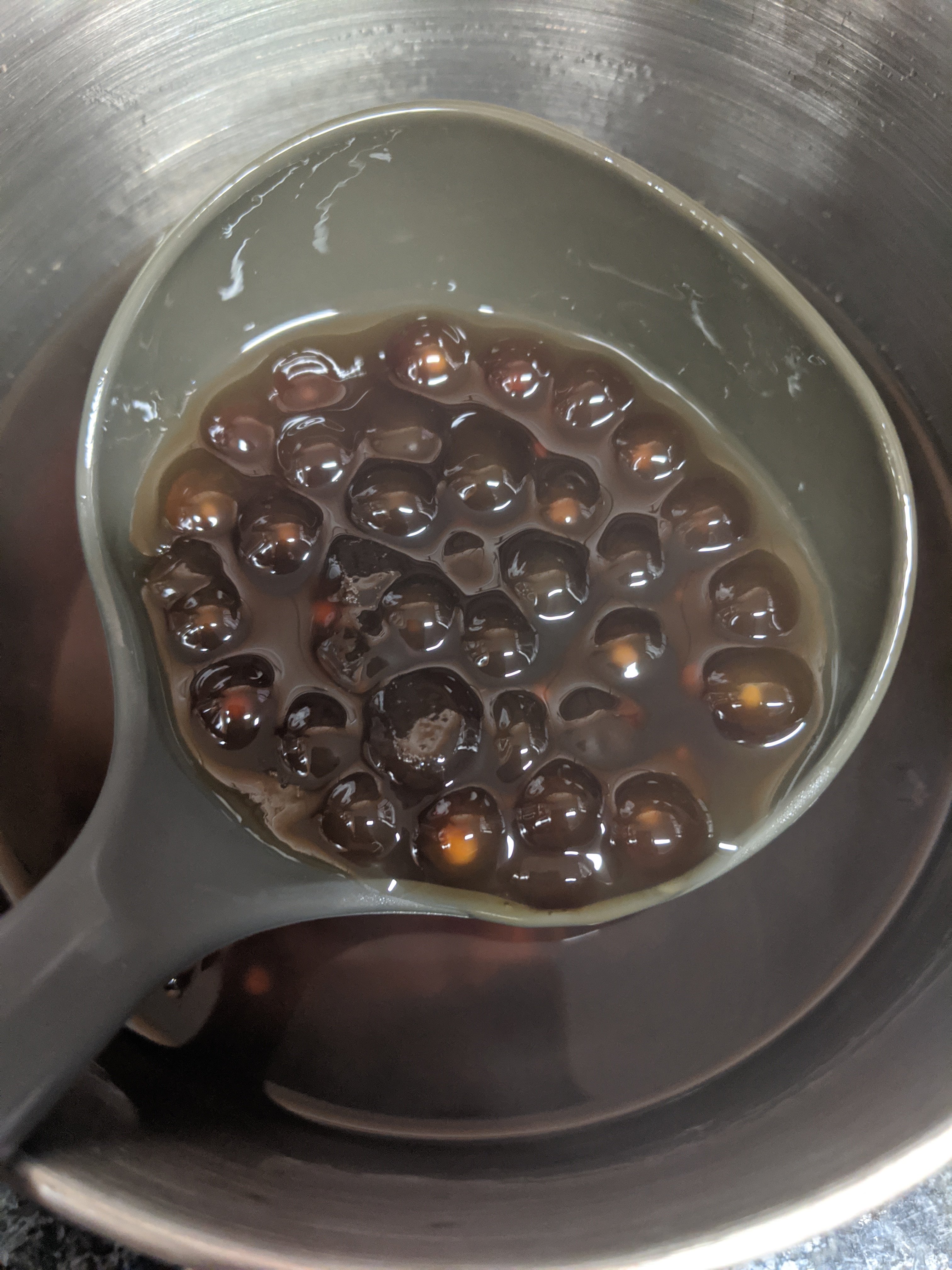 The first time making the pearls didn’t turn out as I expected. I used the white pearl ones. The pearls wouldn’t cook fully even after about 45 minutes of boiling on the stove. I eventually gave up and ate them as is. A little powdery on the inside but it wasn’t bad.