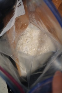 Let the bag and yeasties rest for 10 minutes. You should start seeing some bubbles form in the bag.
