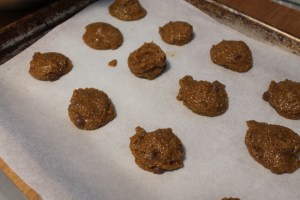 Portion out the cookie dough into 1 inch scoops. You can use a cookie scoop or a table spoon. The cookie does spread slightly so make sure you leave a space between each cookie.