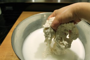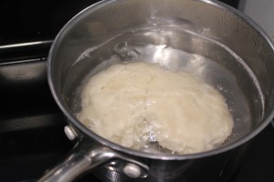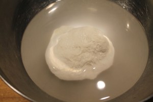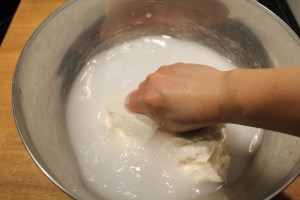 Now place the dough in some warm water. Some people soak the dough for a couple hours. I didn’t.
