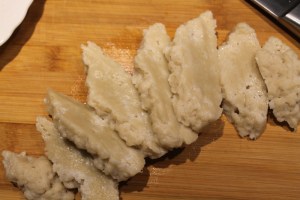 I decided to make a sweet soy sauce to go with the seitan. I sliced the gluten into bite sized pieces.