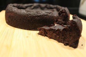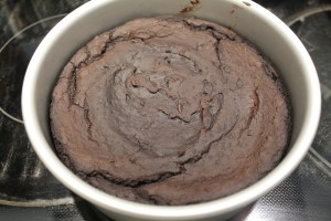 Preheat oven to 325 degrees. Pour into a baking pan and bake for 30 minutes. Make sure you smooth out the top. Turn off the oven and then allow to sit in the oven for another 30 minutes. This allows the brownies to set and get nice and fudgy.