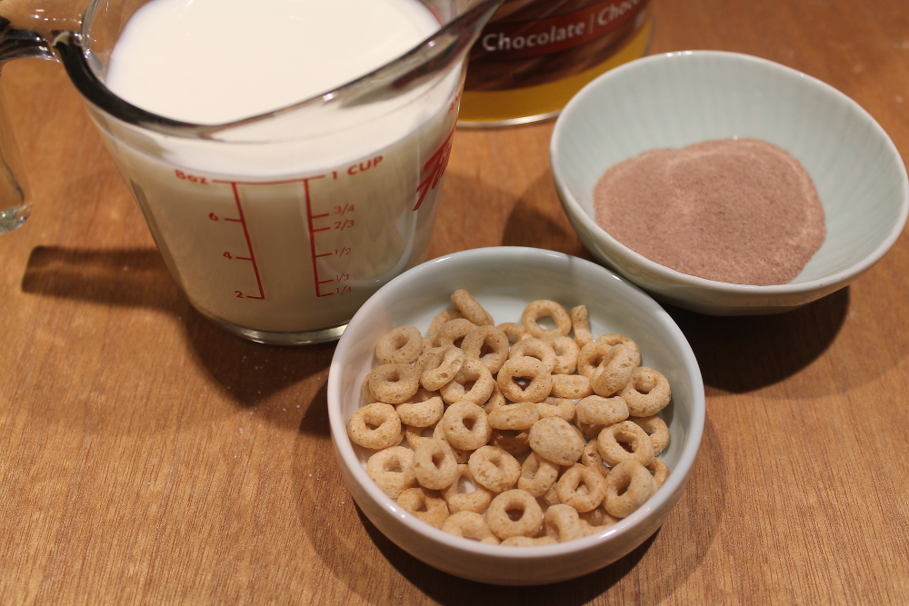 First make some chocolate milk. I used Breakfast Essentials and whole milk. Then get your favorite cereal.
