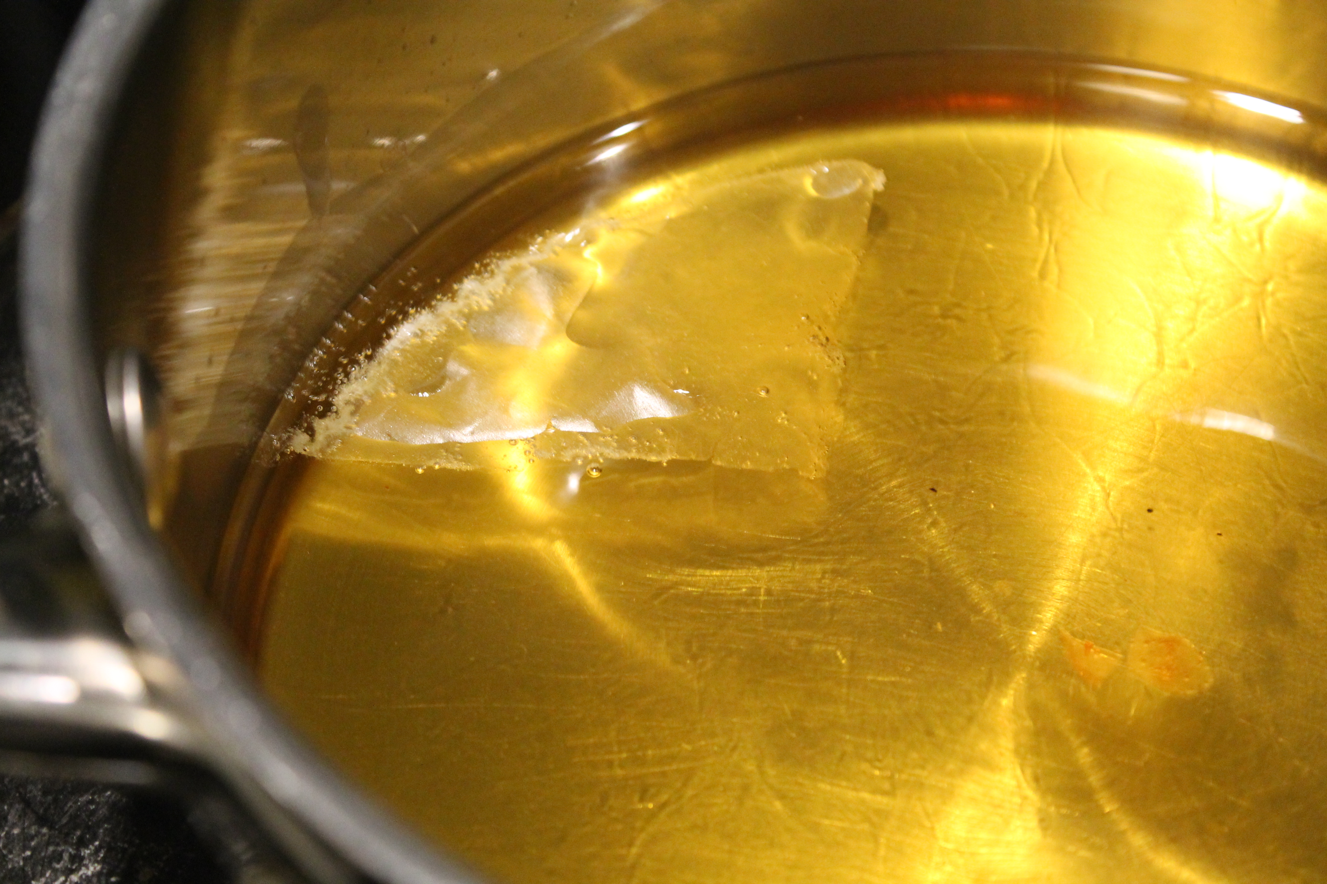 Toss in a few chips at a time. They will expand quickly, so this shouldn’t take long.