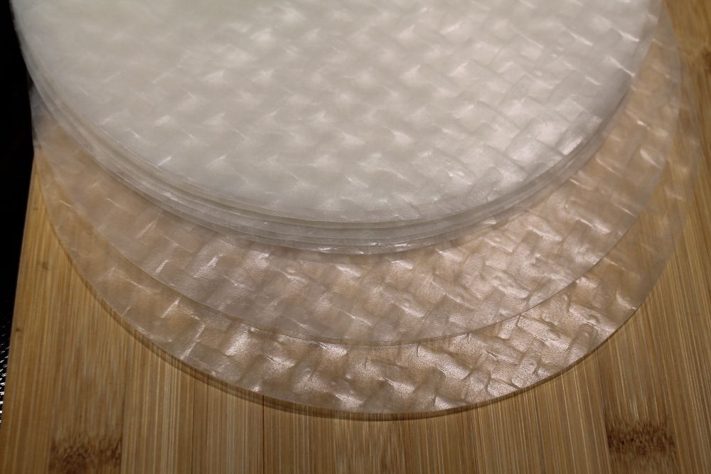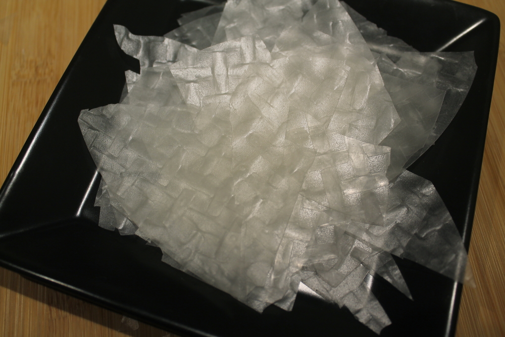 For this recipe you will need some rice paper sheets. These are the ones you use for salad rolls. You could probably use rice noodles too.