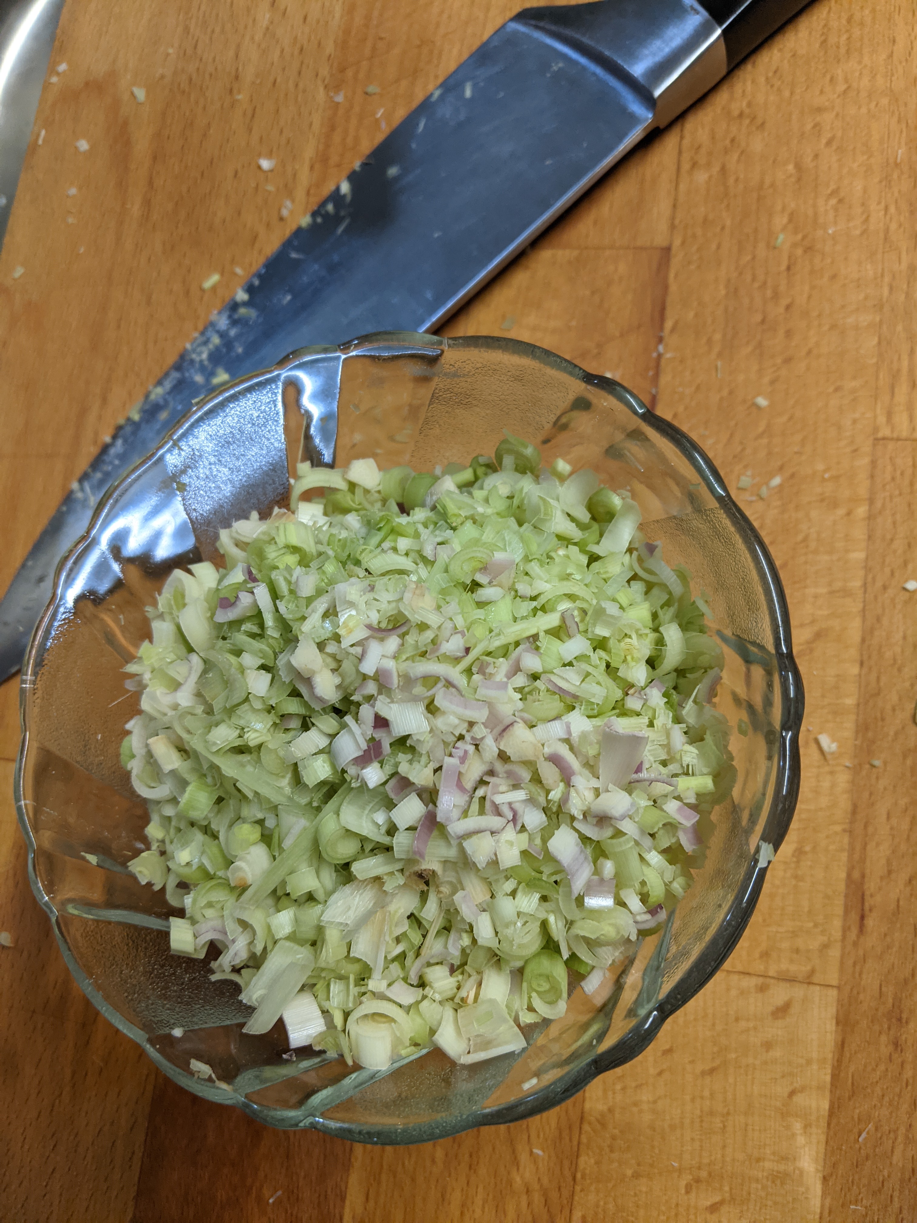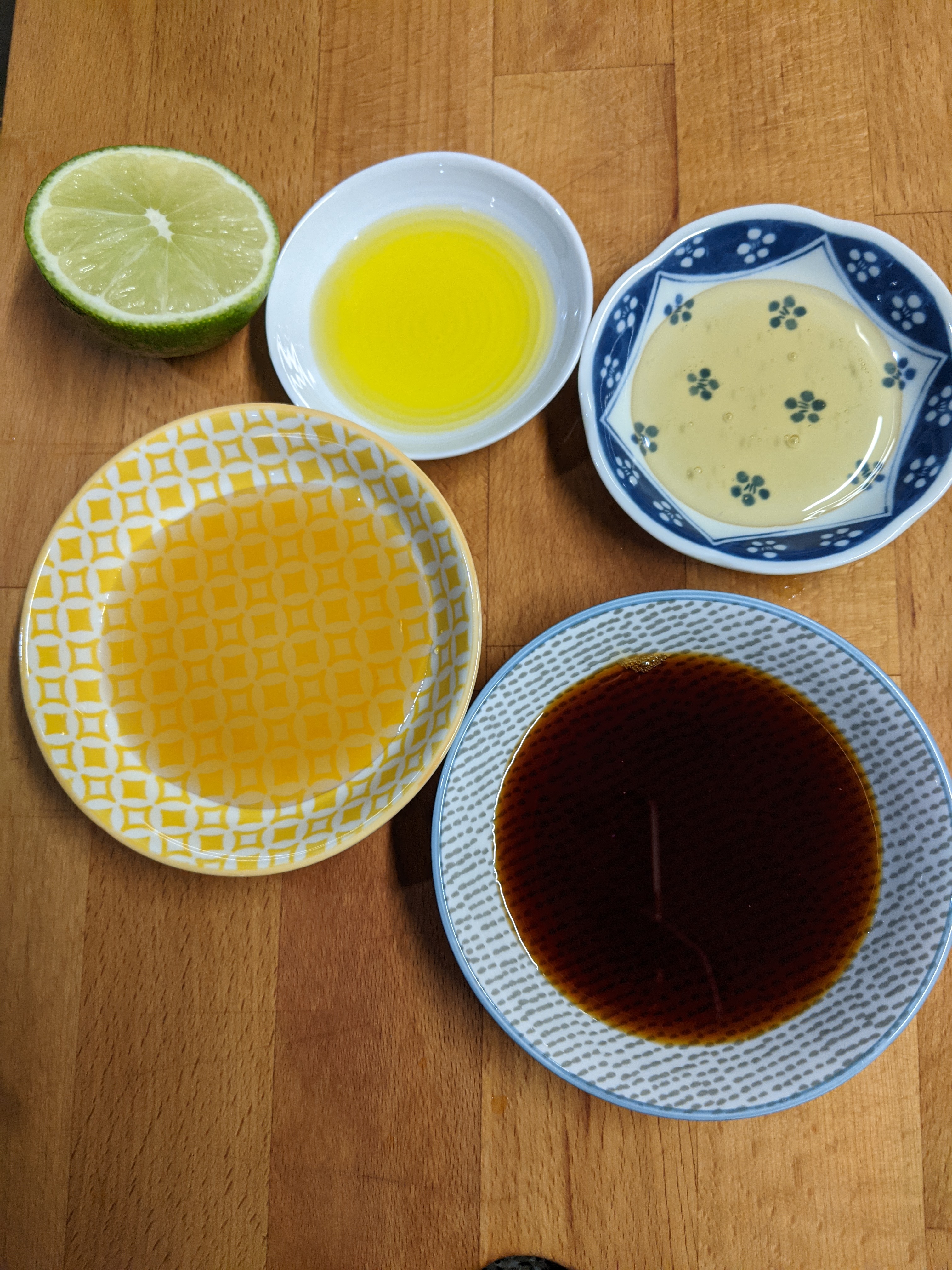 Once the lemongrass is prepped, you can begin making the marinade. Combine 2 tbsp lemongrass, 2 cloves minced garlic, 1 tsp minced ginger, 1/4 tsp pepper, 2 tsp light soy sauce, 2 tbsp fish sauce, 1 tbsp lime juice, 2 tsp vegetable oil, 2 stalks green onion (only the white part) and 2 tbsp sugar. I substituted the sugar for some honey.