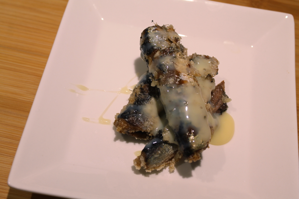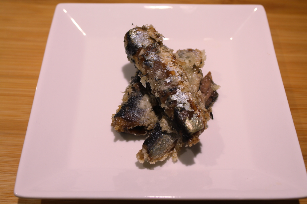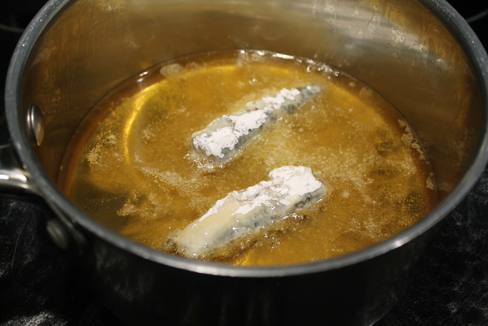 Batter the sardines in some cornstarch to make a crust.