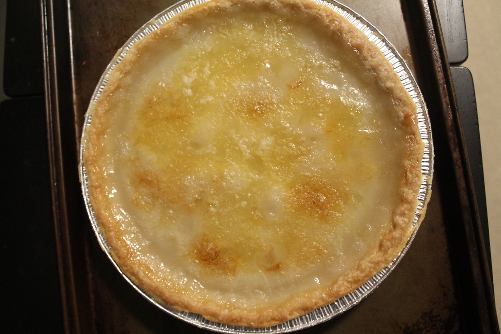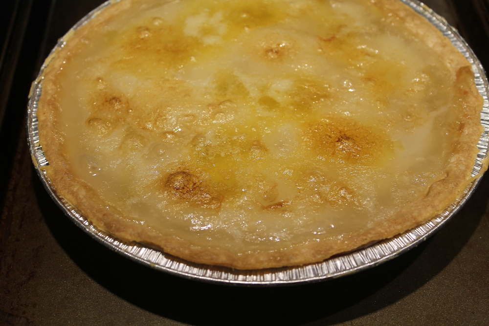 Remove from the oven and allow to cool. The pie will be watery but will set when it cools. Refrigerate over night.