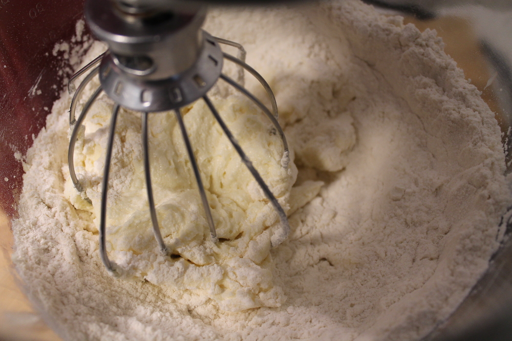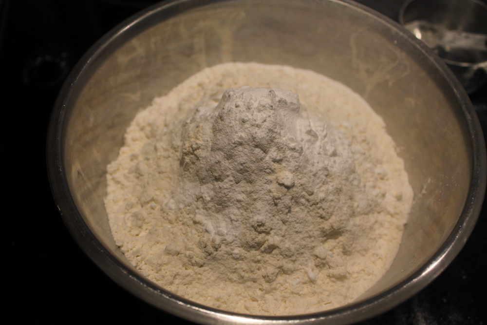Mix together. The dough will look crumbly but once you knead with your hands, the dough will come together.