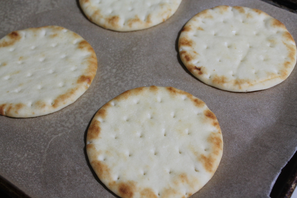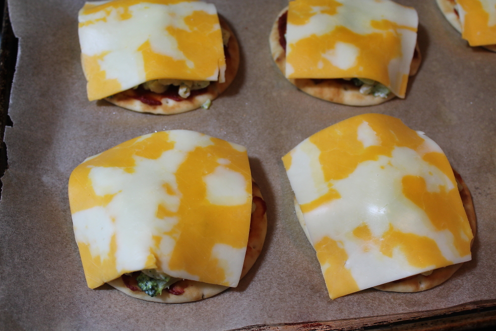 Then I added a slice of cheese on top of each pizza.