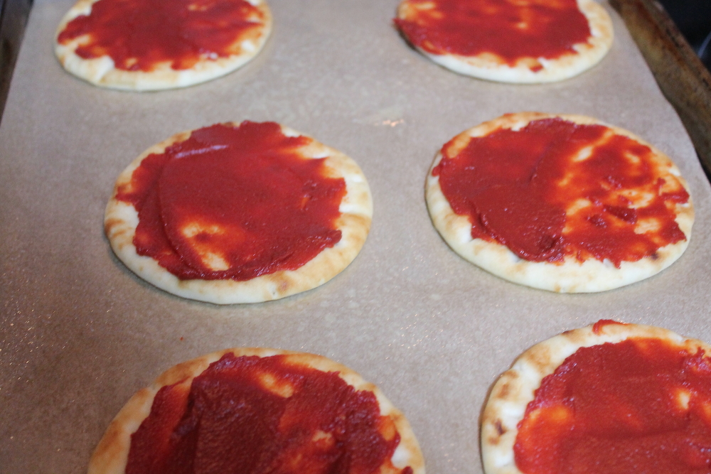 These actually made the perfect sized pizzas. Spray each naan with a little oil to help it crisp up.