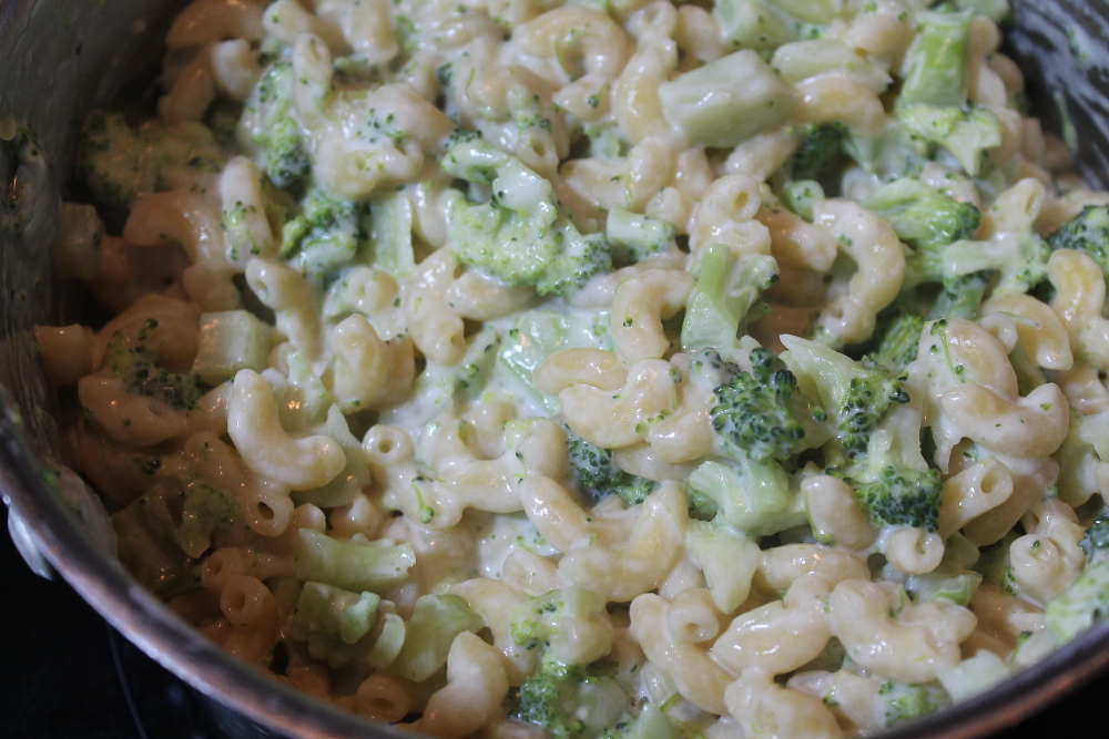 Make a batch of milk alfredo pasta. I added chopped broccoli with the milk to add some veggies to the dish.