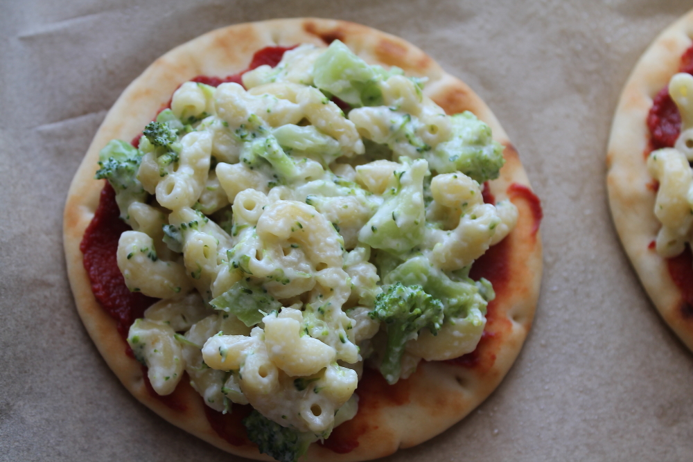This creation is credited to my son who wanted macaroni pizza. This recipe is a combination of my two go to recipes: milk alfredo pasta and naan pizza.