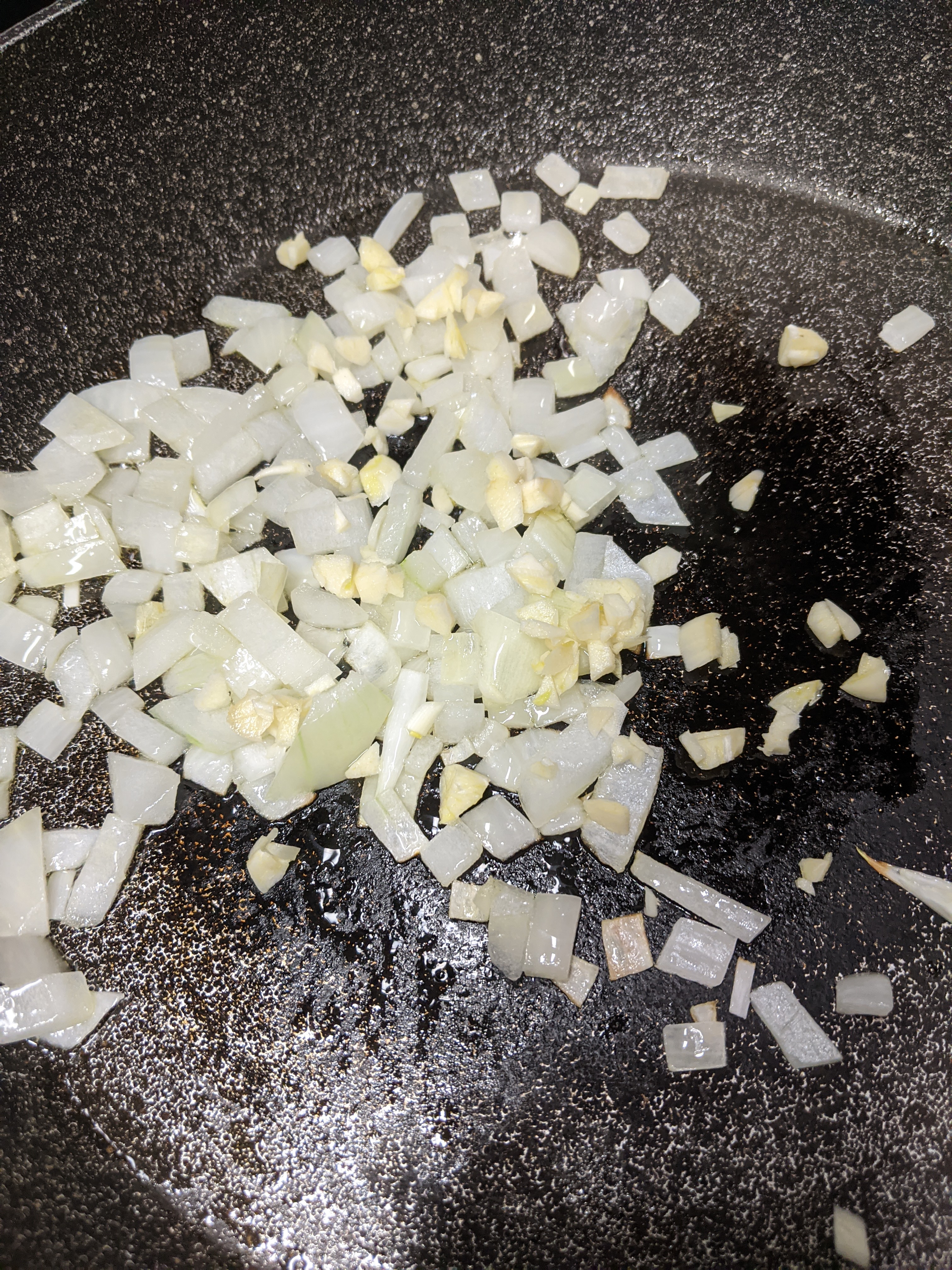 - Dice 1/2 an onion and sauté until it is golden brown.