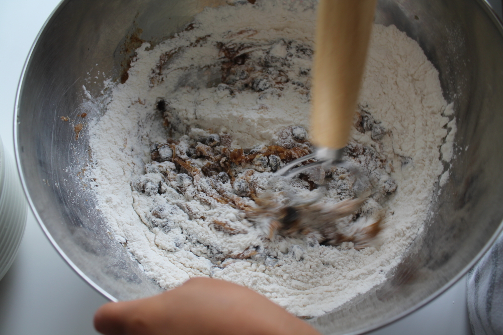 Finally add the dry ingredients.