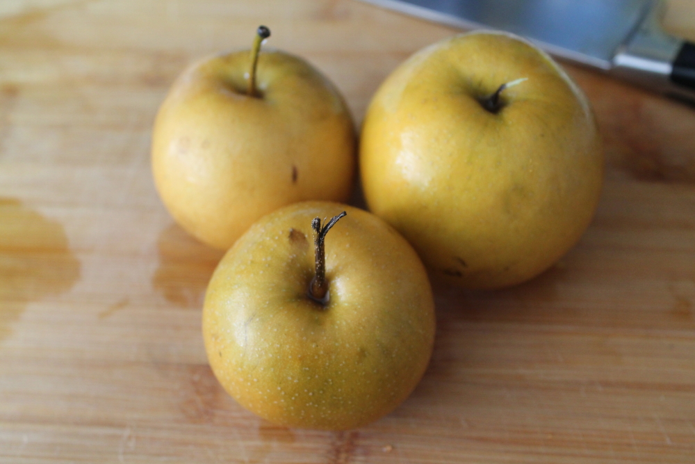 As I was searching for recipes to make with my Asian pears, I came across this recipe through my coworkers. Normally she would make spiced blueberries but suggested that I try this with some Asian pears. Well it was a hit with my family and goes great with so many dishes. Think of chutney. Slightly sour and sweet and very spiced.