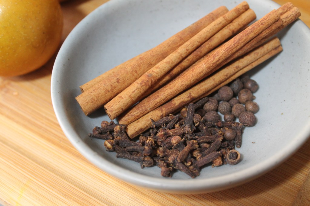 For this recipe, I used a lot of whole spices: cinnamon sticks, allspice, and cloves.