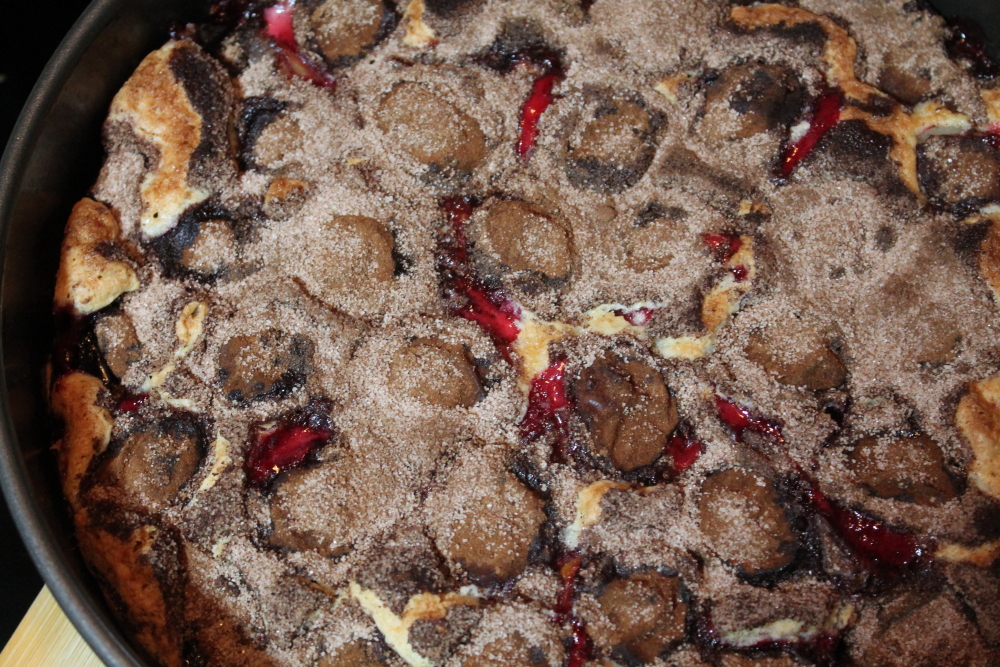 This is a cozy family favorite usually made during the summer time when there are fresh plums available. However I think this would make a great holiday dessert because of all the cinnamon goodness. The plums can be substituted for other fruits, but the combination of sweet and tart work really well in this recipe.