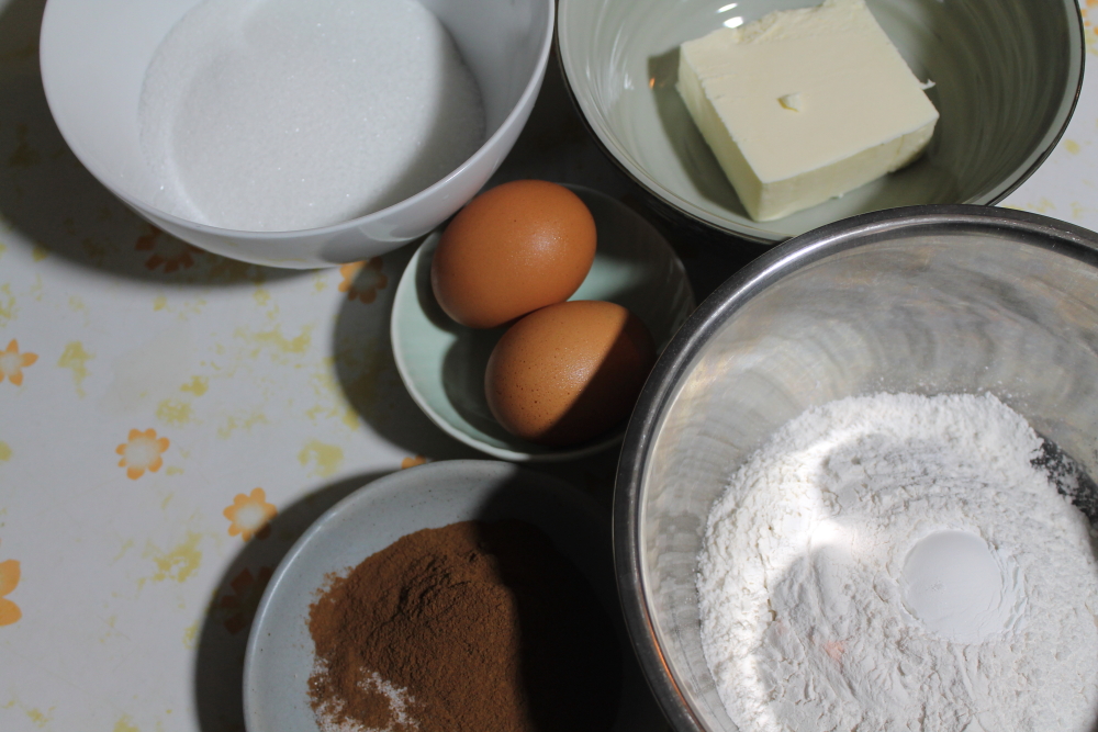 For this recipe, you will need flour, butter, eggs, sugar, cinnamon and plums.