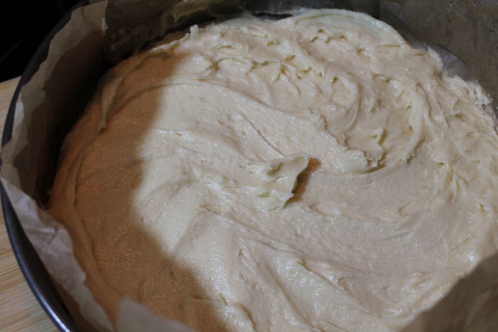 Pour the batter into the pan. You can butter and flour the pan or line it with some parchment paper.