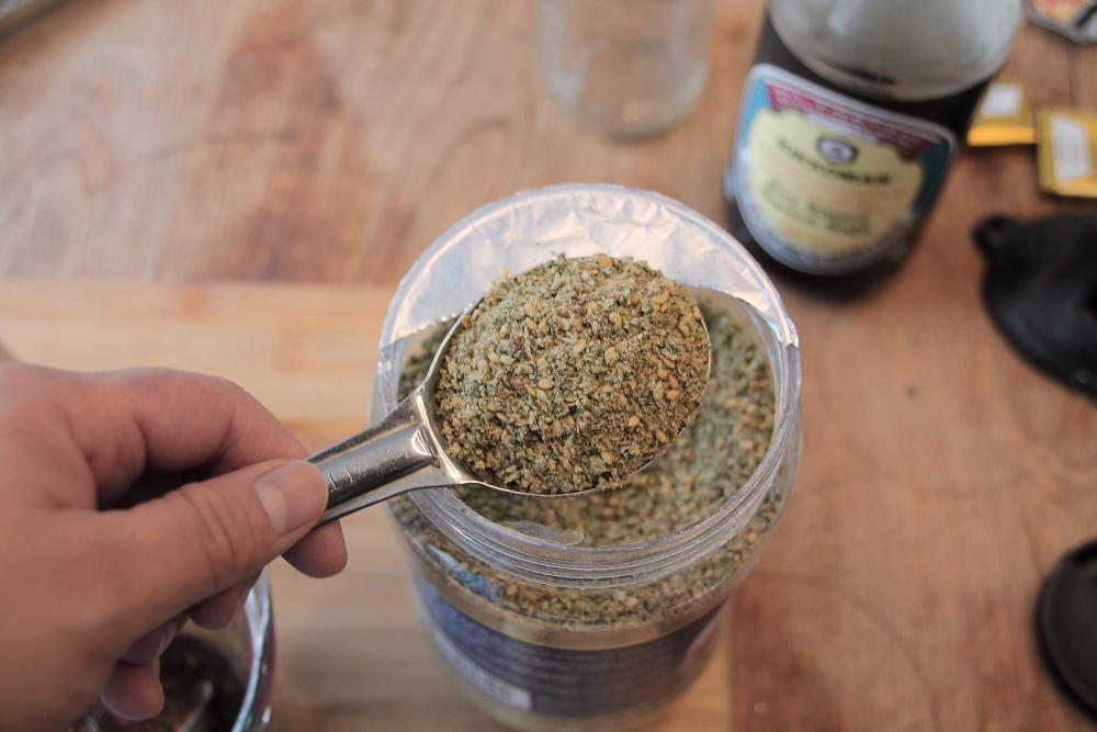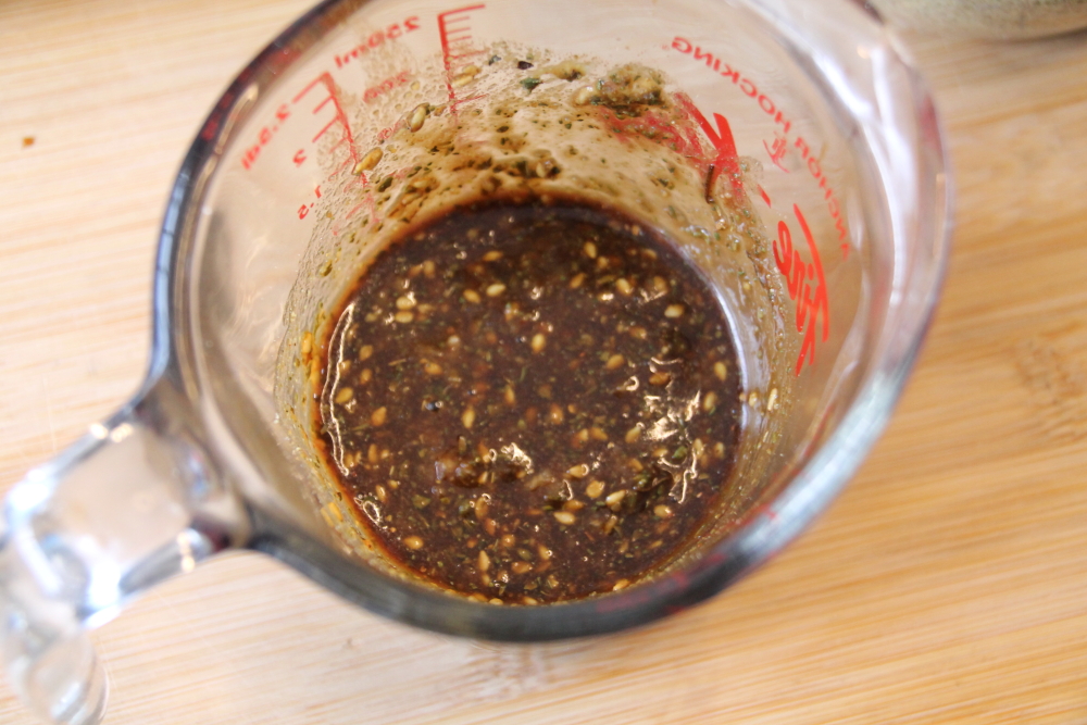Some of these ingredients may be a little more challenging to get but I think this recipe is very forgiving and can be adapted in many ways. For this recipe, you will need garlic, oil (I used Sunflower Oil), Pomegranate molasses (I used Pomegranate juice concentrate), Zaatar spice, soy sauce, and Dijon mustard.