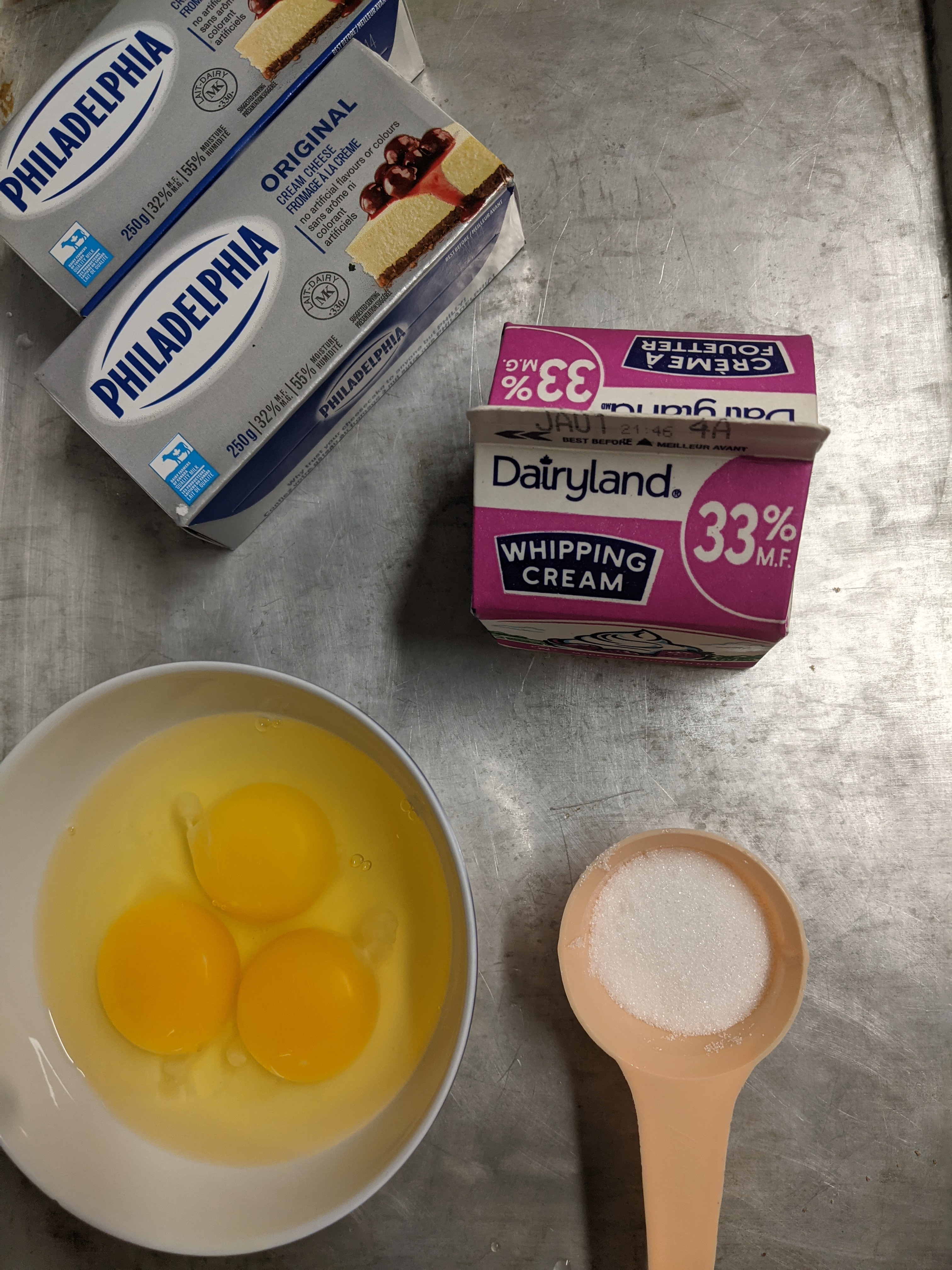 - In a mixing bowl, add 16 ounce of cream cheese. Beat the cream cheese with a hand mixer. Slowly incorporate 1/2 cup granulated sugar, 1/2 teaspoon salt and the 1 1/2 teaspoon vanilla extract. When these ingredients are mixed well, add one egg at a time and continue to mix together. Set aside.