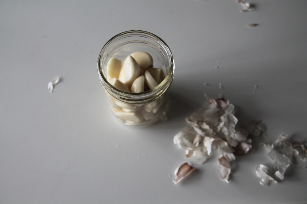 First you need to a bunch of garlic. I did read that it is better to use garlic from a bulb but I have tried with pre-peeled garlic and it still works.