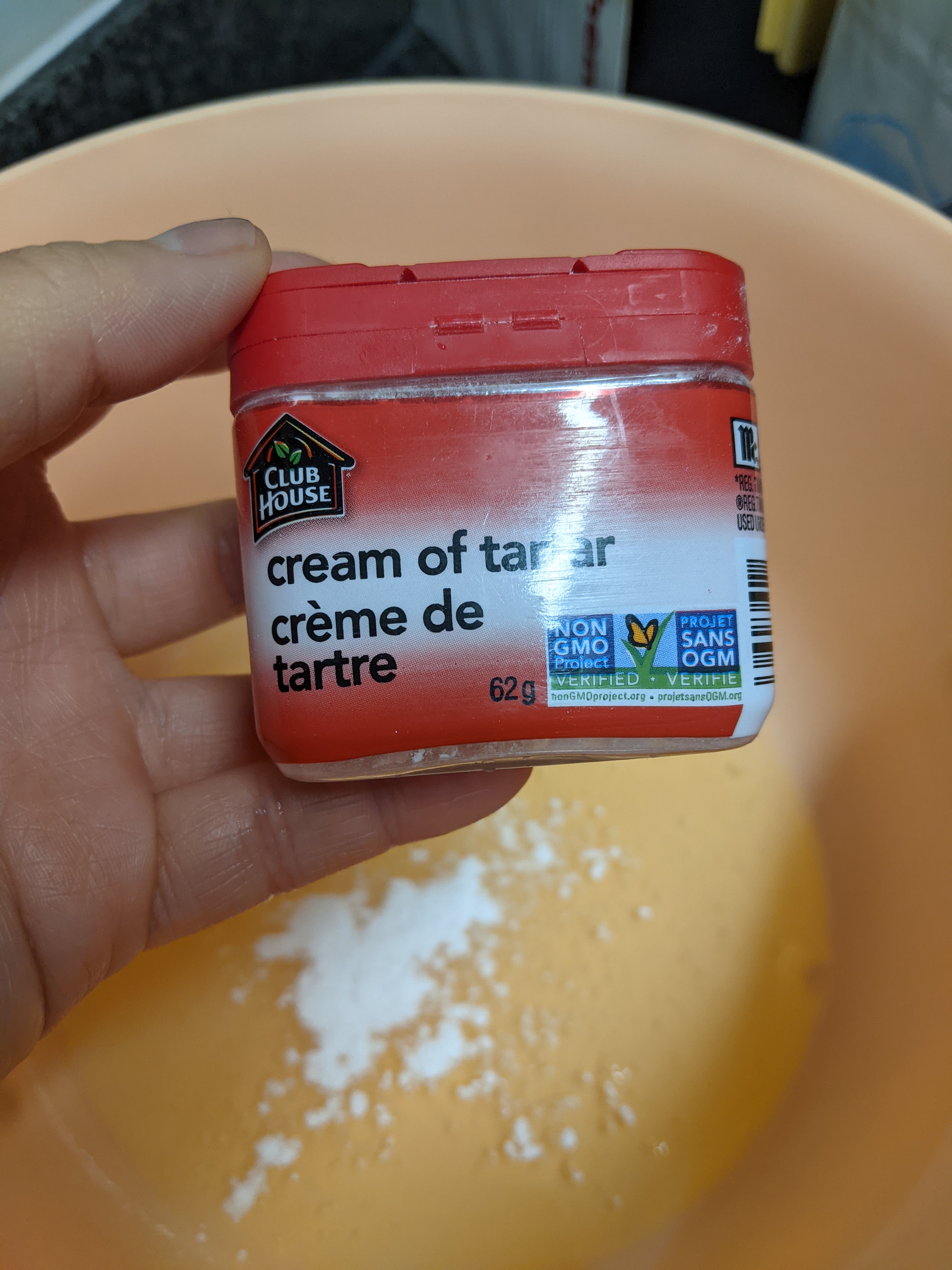 - Beat 4 egg whites (room temperature) with 1/4 teaspoon cream of tartar, 3 tablespoons of granulated sugar and vanilla extract. Beat until it is fluffy and has stiff peaks.
