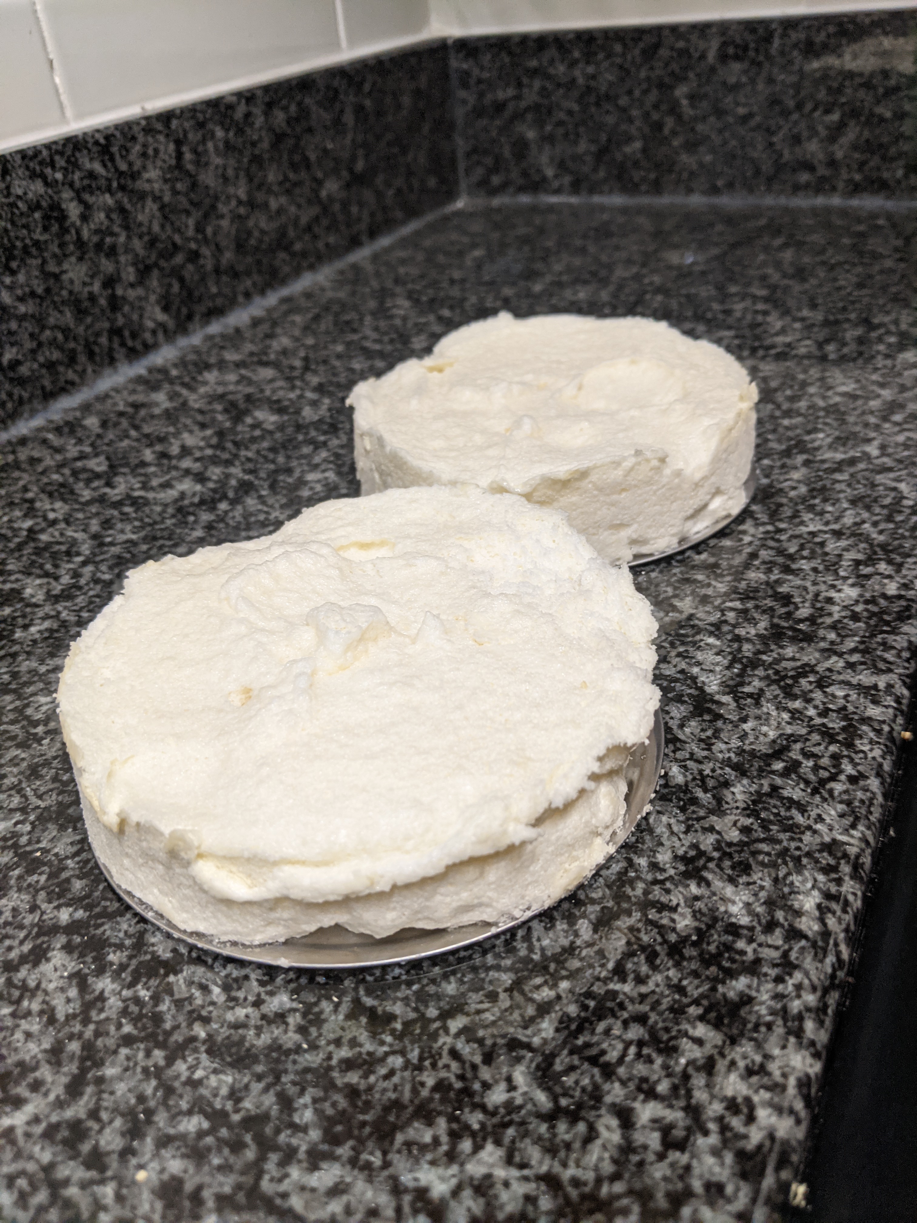 - Flip the cake pan over and let it cool completely. (Be careful, the bottom of my pan are loose so they fell out when I flipped mine)