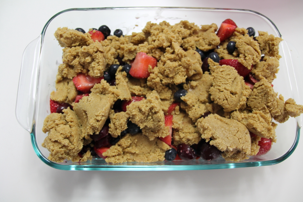 Top the berries with this mixture. I tried to tuck in some of the dough between the berries.