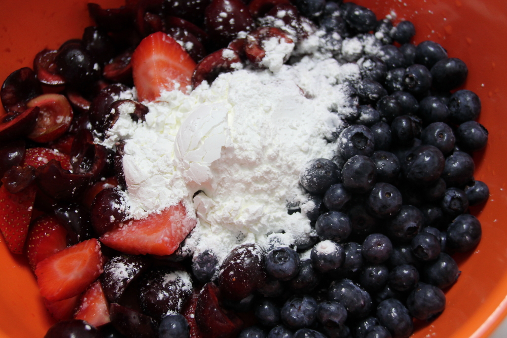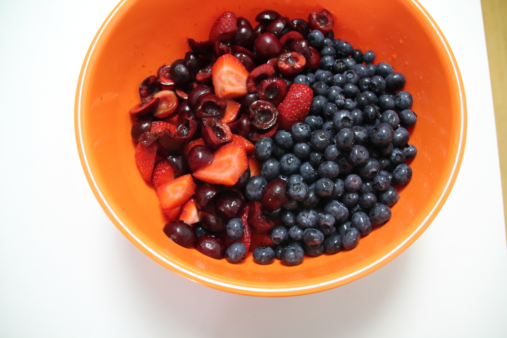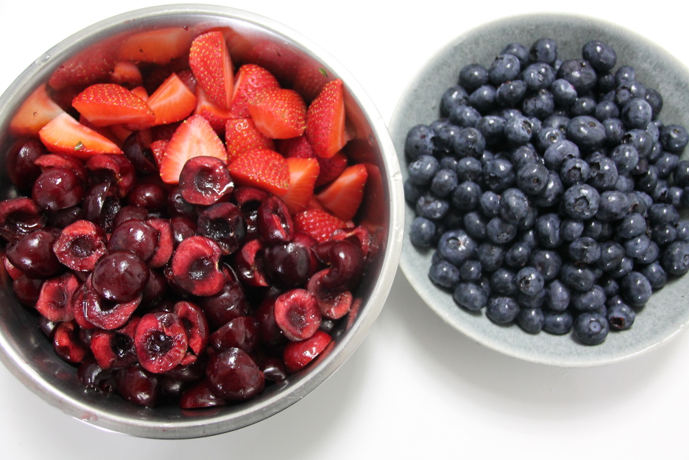 Prepare some of your favorite berries. I used cherries, blueberry and strawberries