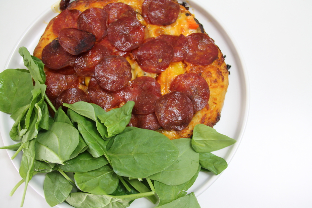 Add whatever topping you like and bake the pizza in a preheated oven at 400 Degrees (or higher if you wish) for 10-15 minutes. Enjoy!