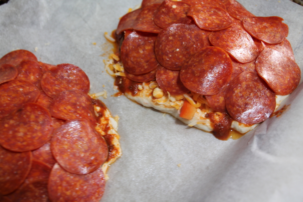We usually top with tomato sauce, peppers, mushroom and pepperoni. We also add diced onions and garlic to our pizza sauce. My aunt uses marinara sauce to top her pizza! Such a good idea.