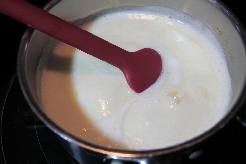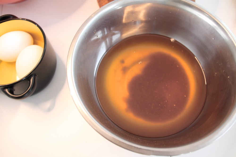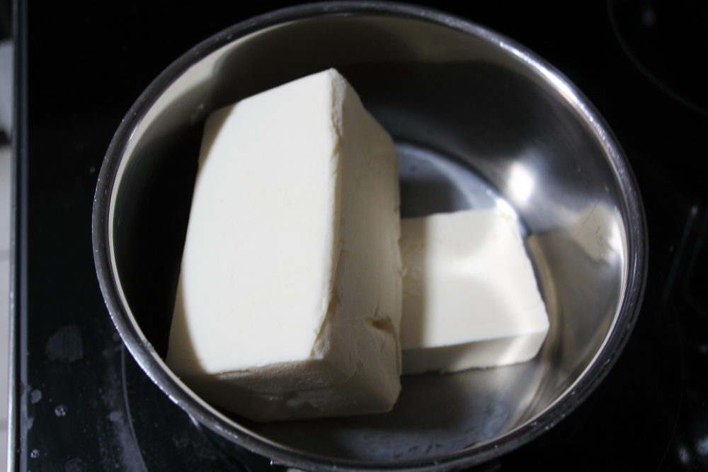 Brown the butter by adding the butter into a sauce pan. Simmer on medium heat until the butter browns. Set aside and cool.