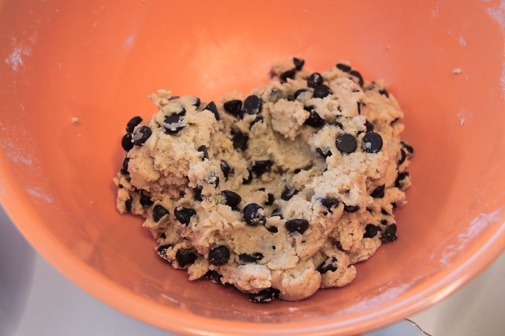 Slowly add the flour mixture in to the butter mixture. Finally mix in your chocolate chips.