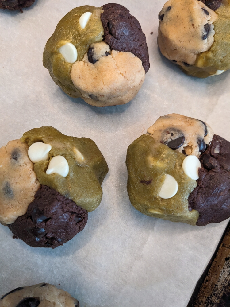 You can change up this recipe by making three of your favorite cookies and mixing them together. This is quite time consuming as you are essentially making three cookies instead of one.